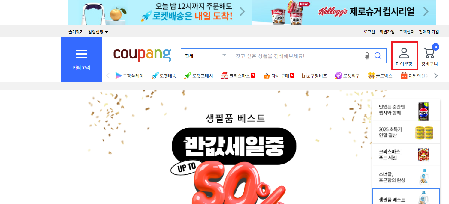 - 쿠팡 앱 → 마이쿠팡